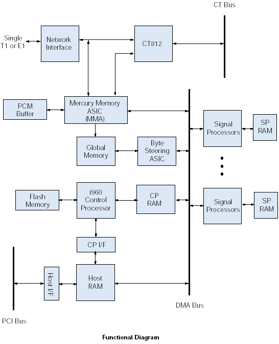 DMVF2401TIPCIU以及DMVF3001E1PCIU板卡將24個T-1或者30個E-1語音處理線和14400b/S(v.17)傳真功能進行了綁定,該傳真功能可以具有傳真機的所有基本功能,甚至更多,包括傳送和接收多個文件、輪詢功能、廣播功能以及重復輪詢。該種板卡采用了雙重處理器的結構,這種結構組合了DSP的信號處理功能和通用控制微處理器的策略決定、數據移動功能。板卡為以下資源提供了呼叫處理的能力:從電話網傳來的T-1或者E-1電話信號;共享通過CT