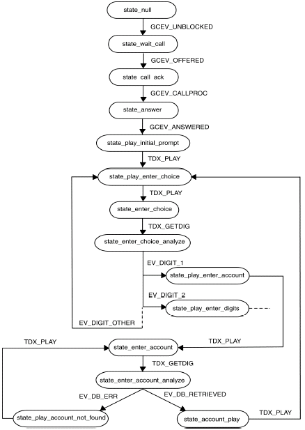 IVR參考程序(SimpleIvr)為想用R4和包括軟件開發(fā)包(SDK)的Global Call APIs 建立應(yīng)用程序的Dialogic用戶提供了演示代碼。該應(yīng)用程序用C++開發(fā),使用面向?qū)ο蟮姆椒ㄔ试S增加新的組件及對已有組件的重用。SimpleIvr應(yīng)用程序設(shè)計為單線程、異步,符合必要的性能需求,并使用了一些特殊的技術(shù),比如線程池,來處理長時間的運(yùn)轉(zhuǎn)。