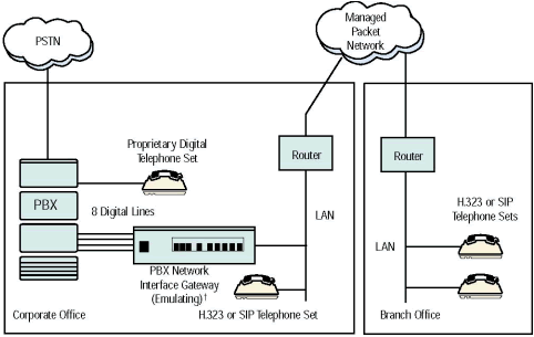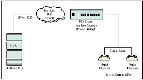 - 場景 2 - 把遠(yuǎn)端辦公室通過一個包交換網(wǎng)絡(luò)連接到總公司PBX系統(tǒng)上. 基本來說, 網(wǎng)關(guān)把數(shù)字電話功能擴(kuò)展到遠(yuǎn)程辦公室.